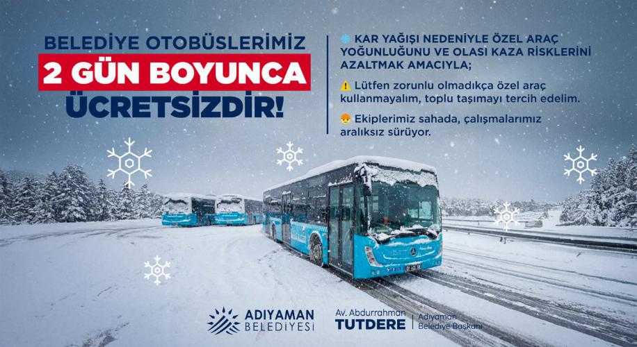 Adıyaman Belediyemizden kar düzenlemesi: toplu yaşıma 2 gün ücretsiz