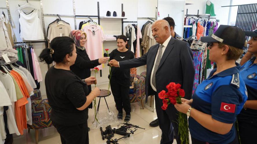 yöneticilerimiz ve personelimiz esnafla bir araya gelerek kırmızı karanfil takdim
