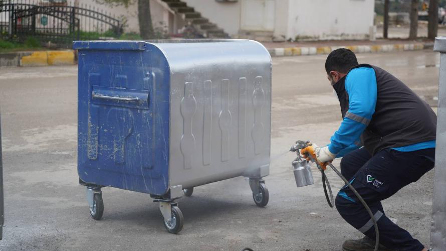 konteynerlere belediye logosu basılarak yeniden kullanıma hazır hale