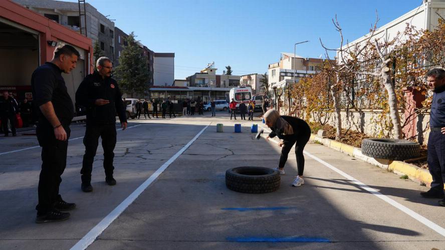 İtfaiye Müdürlüğü bahçesinde kurulan parkurda sınav