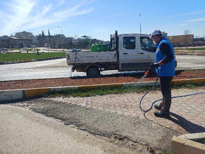 yabani otla mücadele kapsamında kaldırım kenarları, kavşaklar, refüjler ve