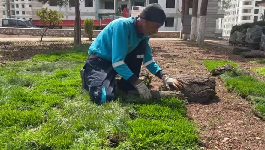 yapılıyor. Bu kapsamda deforme olan bölgelere hazır çim serilerek parkların