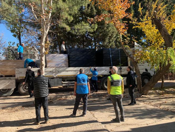 Bahçeler Müdürlüğü yetkilileri, teslim alınan malzemelerin en kısa sürede