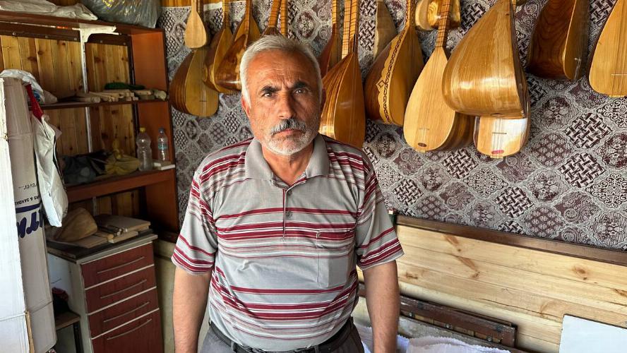 atölyesinden sonra sanatını sürdürmek için bir yol arayan saz ustası Hüseyin