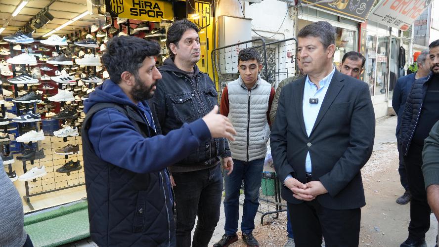 Saha incelemesi sırasında esnaf ve vatandaşla sohbet eden