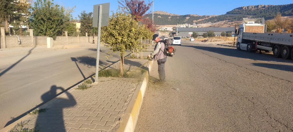 bahçe ve yeşil alanlarda bakım çalışmalarını sürdürüyor.