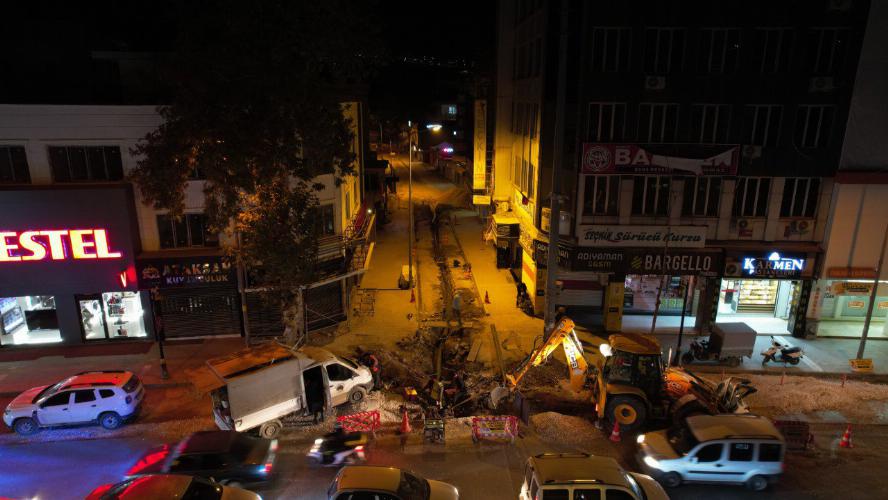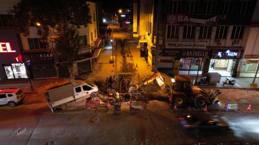 Adıyaman Çarşı Merkezinde Altyapı Çalışmaları Gece Boyunca Devam Ediyor