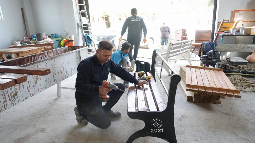 metal aksamlar titizlikle işlendikten sonra park ve yeşil alanlara