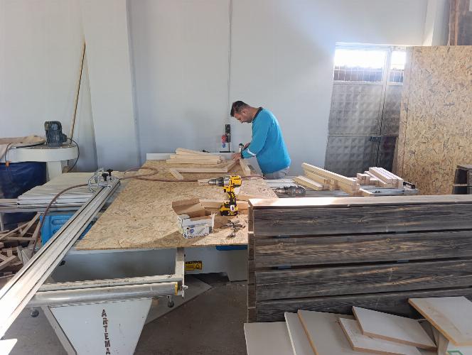 atölyede üretilen oturma grupları, kamelya, dekoratif ağaç süsleri ve ahşap çöp