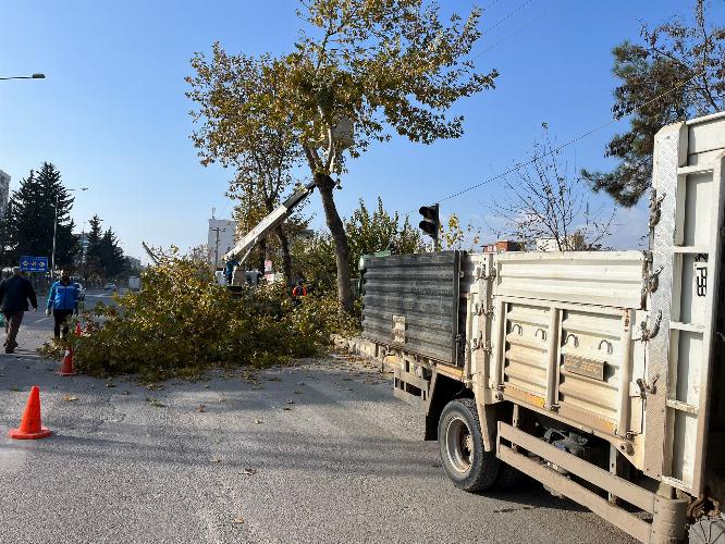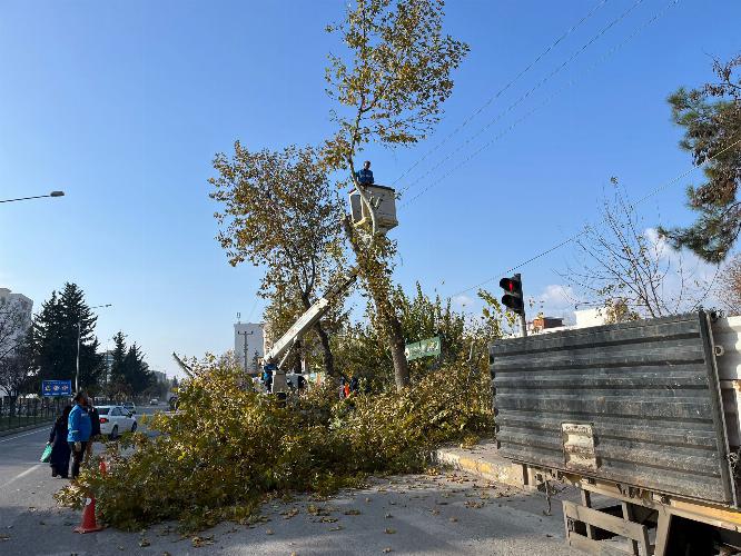 sokaklar başta olmak üzere şehrin pek çok noktasında ekipler yüksek budama